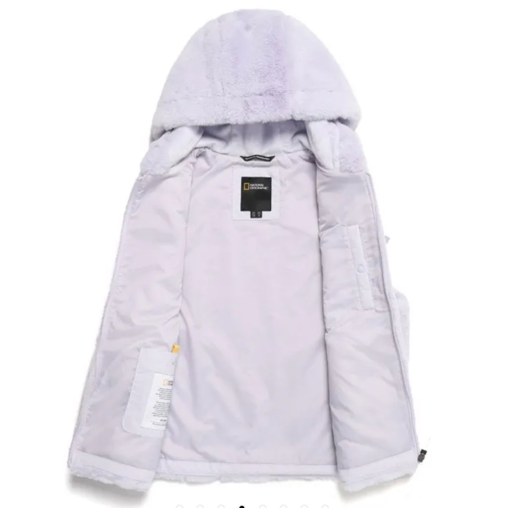 韓國國家地理紫色毛毛有帽背心